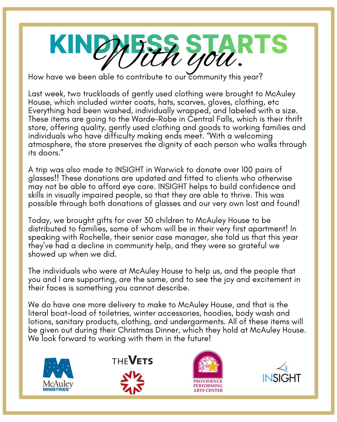 This year, we decided to explore new ways of giving. Given the constant changes to our climate, we felt it was only fitting to support an organization that genuinely needs our help and works closely with the communities we aim to assist. It seemed appropriate to seek an organization that aligns with our mission and serves the clientele we are supporting.